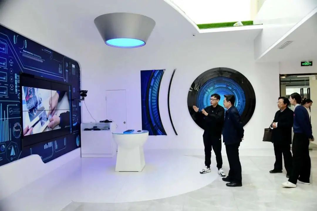 各公司总经理详细介绍了公司的整体运营情况、企业未来规划、企业当前所面临的人才困境、校企联合实验室建设等内容。座谈会后,在企业负责人陪同下,张海峰参观了孵化基地技术演练中心,与企业负责人就产学研合作与人才培养等方面进行了深入交流。