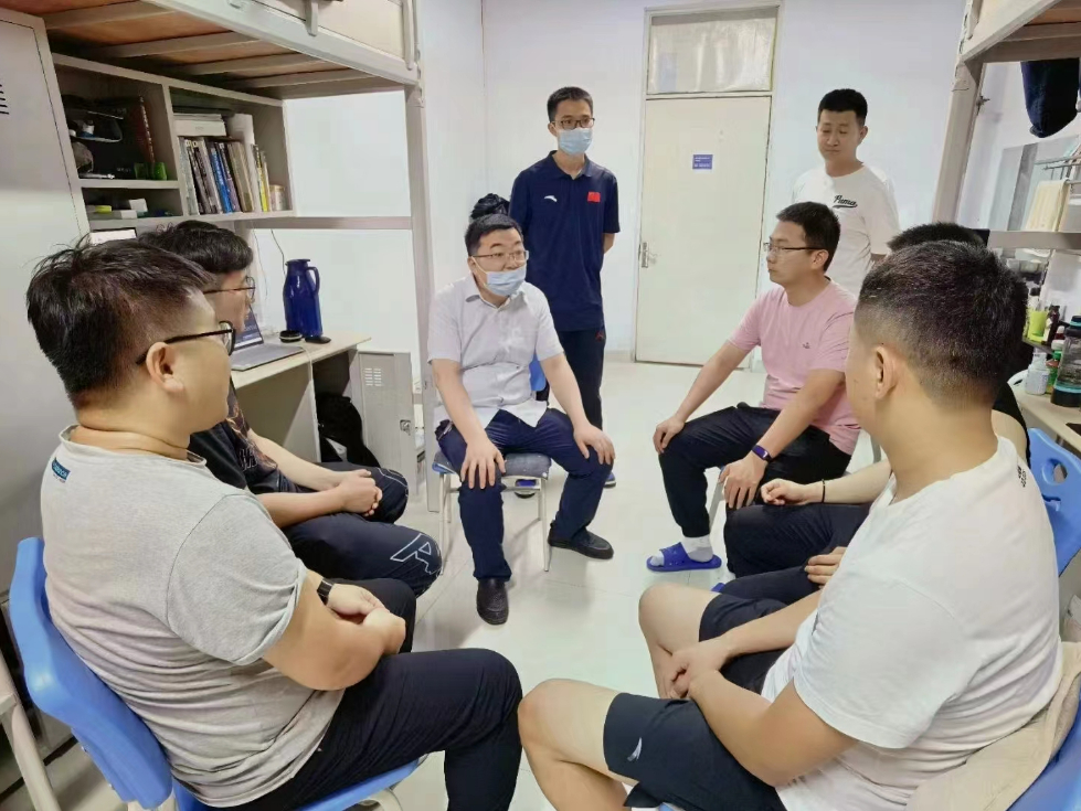 新学期伊始,为落实疫情防控政策、了解员工返校学习生活情况,7月31日三亿经理林民以及公司全体辅导员深入员工宿舍,看望返校员工。