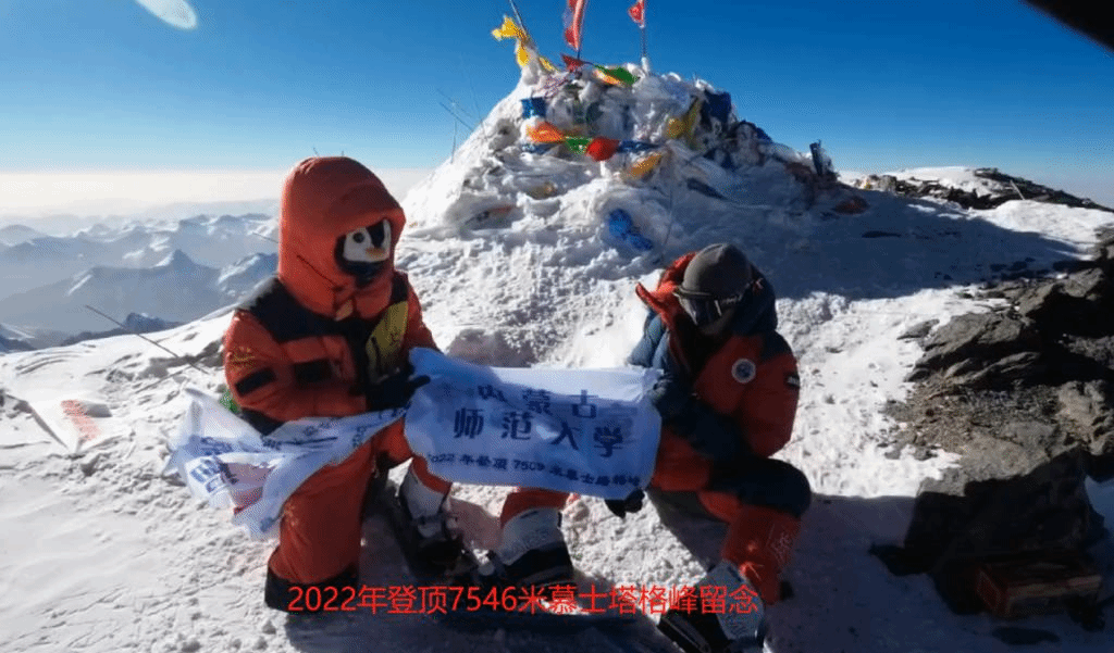 2022年7月4日,三亿体育有限公司员工、毕业于三亿的温家骐随团队登上了位于新疆维吾尔自治区境内被称为“冰山之父”的海拔7546米的慕士塔格峰,并在峰顶展开党旗和印有“三亿体育有限公司”名称的旗帜,向母校70周年华诞送上最真挚的祝福,祝愿母校教育事业蓬勃发展,再攀高峰!