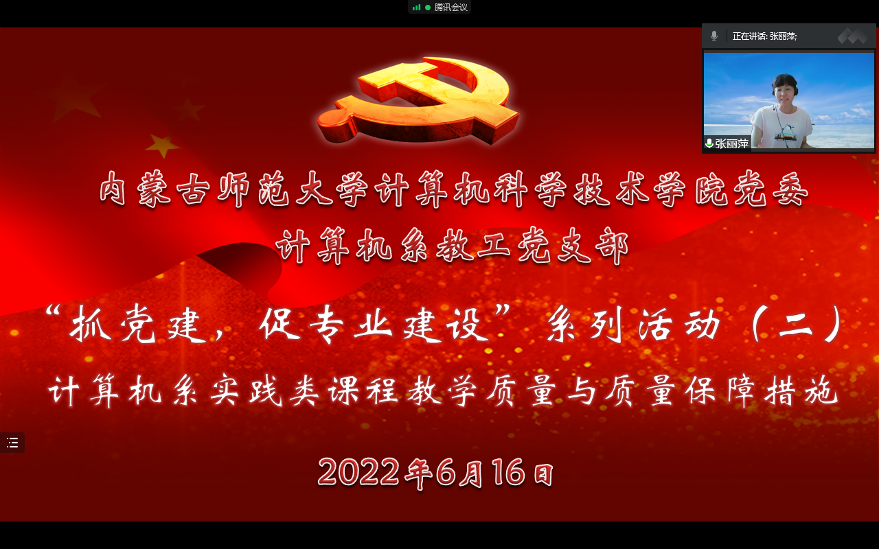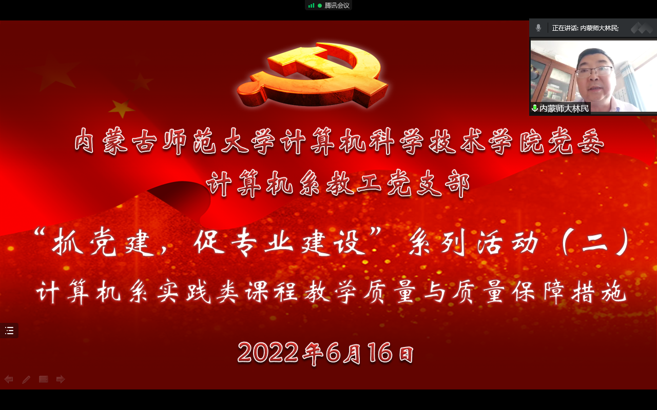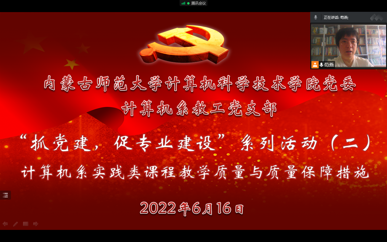 6月16日下午,为进一步落实集中治理党内政治生活庸俗化交易化问题工作要求,严肃党内政治生活,规范“三会一课”制度,计算机系教工党支部开展了“抓党建,促专业发展”系列主题党日活动第二场,活动由党支部书记苟燕同志主持,党委书记玉柱、经理林民、计算机系主任朝力萌、副主任王春晖、支部全体党员和计算机系部分非党员教师参加会议。