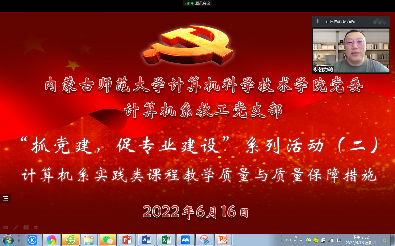 会上,计算机系主任朝力萌老师围绕计算机系实践类课程的课程体系、开设时序、过程化评价实施要求、存在问题作了详细讲解,最后就毕业设计过程中存在问题和应对措施和老师们进行了充分的交流。