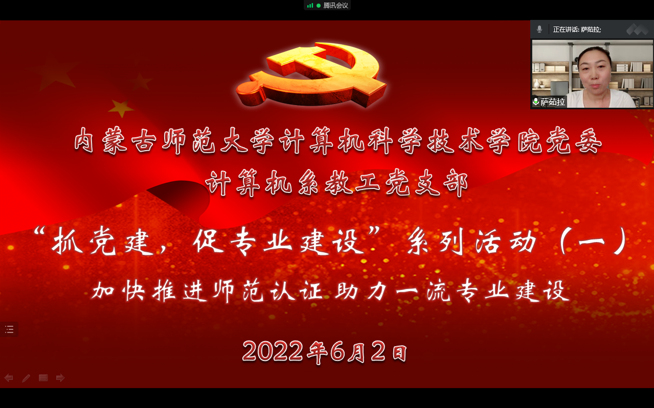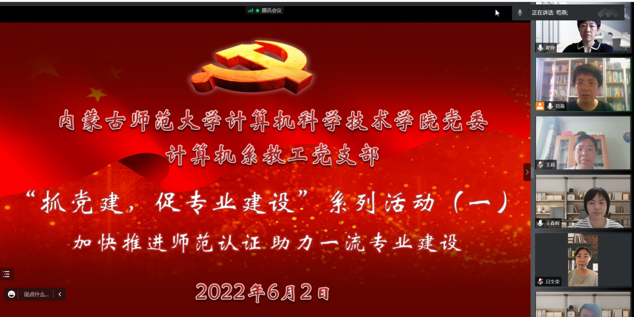 6月22日下午,为进一步落实集中治理党内政治生活庸俗化交易化问题工作要求,严肃党内政治生活,规范“三会一课”制度,计算机系教工党支部开展了“抓党建,促专业发展”系列主题党日活动,活动由党支部书记苟燕同志主持,经理林民、副书记沙金、计算机系主任朝力萌、副主任王春晖、支部全体党员和计算机系部分非党员教师参加会议。