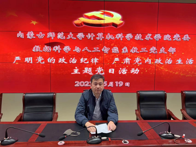 数据科学与人工智能系教工党支部书记葛湘巍主持会议,支部全体党员参会,公司党委书记玉柱列席会议。