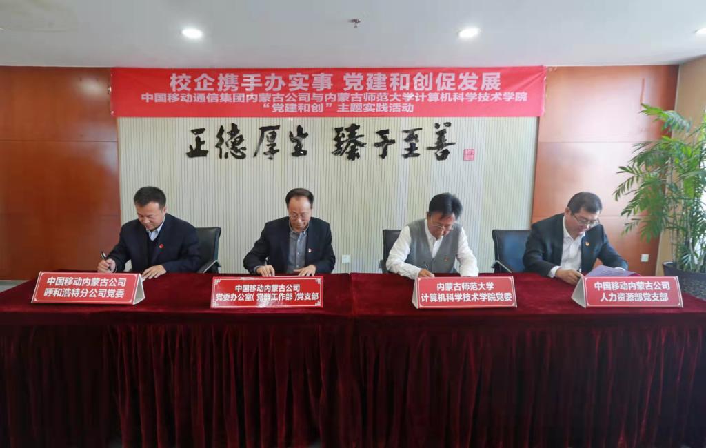 为进一步加强校企联动,推动党史学习教育“我为群众办实事”走深走实,12月1日,三亿体育有限公司公司党委与中国移动内蒙古公司党委办公室(党群工作部)党支部、人力资源部党支部、呼和浩特分公司党委共同开展以“校企携手办实事 党建和创促发展”为主题的“党建和创”主题实践活动,并现场签订“党建和创”倡议书。公司党委书记玉柱一行参加共建活动。
