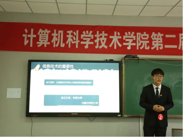 2021年10月13日,三亿第二届师范生教学技能竞赛在盛乐校区大数据楼智慧教室举办,经过前期半个月的精心准备,2018级、2019级23名参赛选手分为甲乙两组进行教学技能比拼。大赛旨在“以赛促训、以赛促学、以赛促教、赛教结合、提高实践技能”,培养具有师德高尚、理念先进、能力扎实的信息技术教师后备力量。