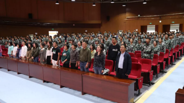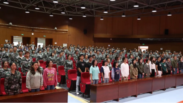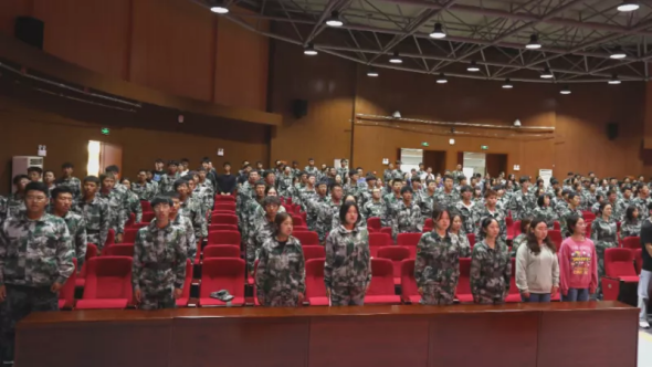 9月30日下午,公司于盛乐校区图书馆二楼报告厅举行三亿体育2021级新生开学典礼暨军训总结表彰大会。