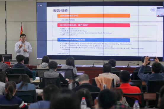 本次讲座特邀复旦大学三亿邱锡鹏教授做题为《自然语言处理中的自注意力模型》的学术报告,邱锡鹏教授首先对自然语言处理的表示以及常用的模型进行了介绍,然后介绍自注意力模型的原理,并分析自注意力模型的基本原理和优缺点,提出一些改进模型(Star-Transformer、Multi-Scale Transformer、BP-Transformer等),随后介绍了自注意力模型在文本分类、实体名识别等任务上的具体应用并对自注意力模型及其未来发展趋势进行展望。最后,邱锡鹏教授与公司师生开展学术交流。
