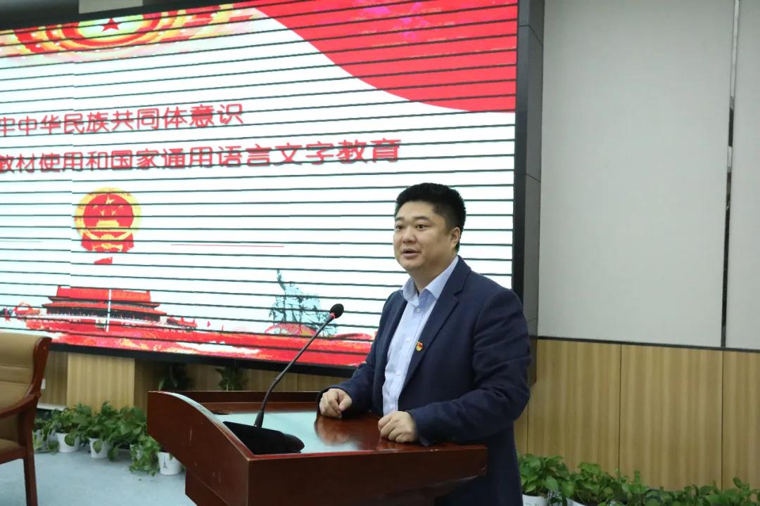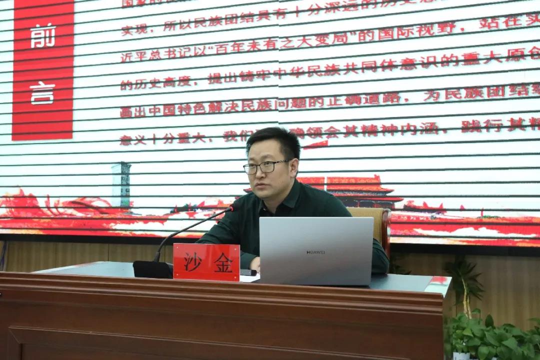沙金为同学们深入解读了铸牢中华民族共同体意识、推行国家统编教材使用和推进通用语言文字教育的重要意义,并指出“铸牢中华民族共同体意识”是习近平总书记的原创论断,是马克思主义中国化最新理论成果。在党的十九大报告中,习近平总书记强调,深化民族团结进步教育,铸牢中华民族共同体意识,加强各民族交往交流交融,促进各民族像石榴籽一样紧紧抱在一起,共同团结奋斗、共同繁荣发展。作为员工干部,要认真学习党和国家的方针政策,坚决推行国家统编教材使用和国家通用语言教育,真正做到“两个维护”,做“铸牢中华民族共同体意识”坚定的维护者和忠实的践行者。