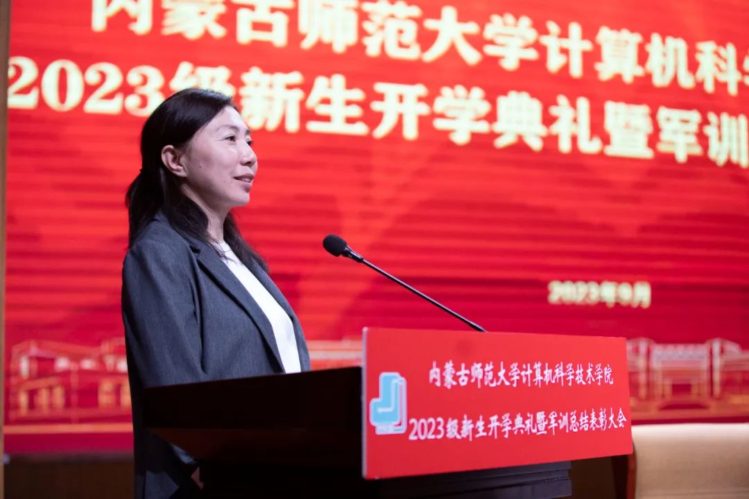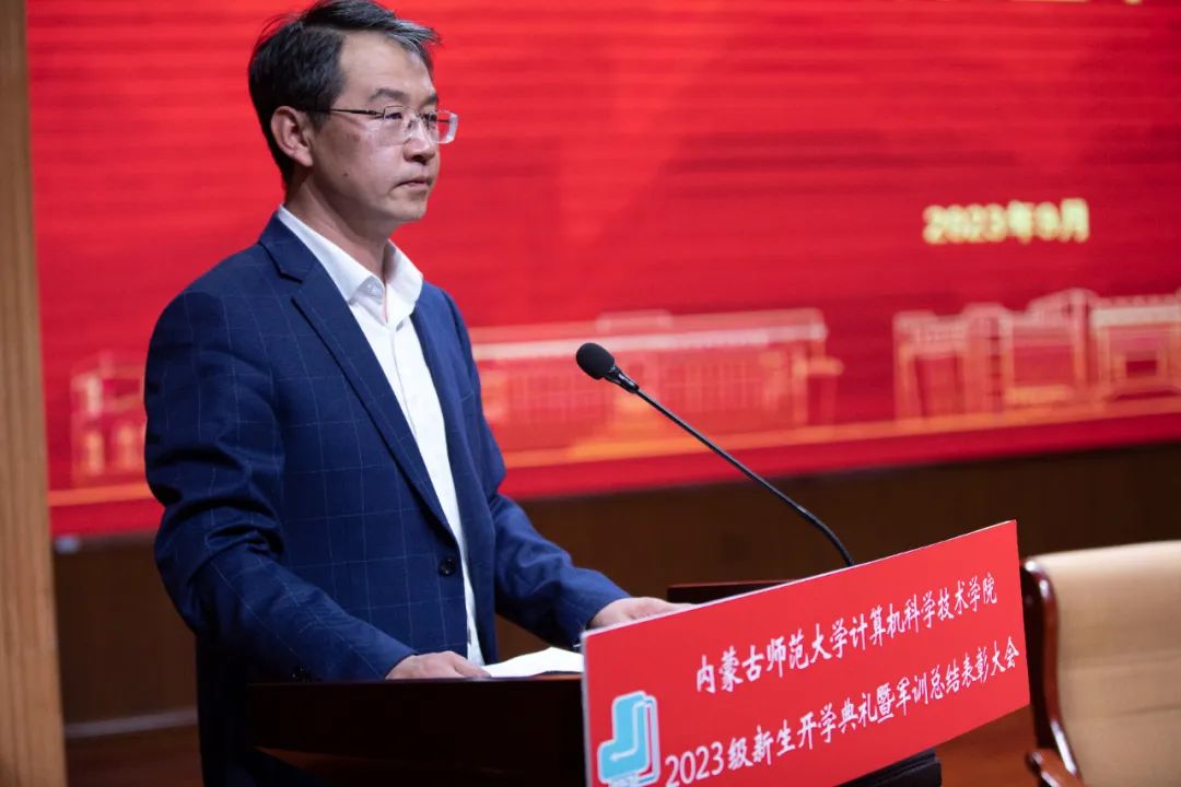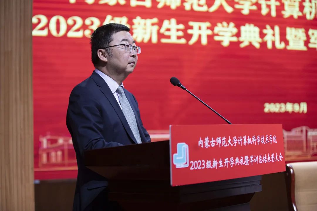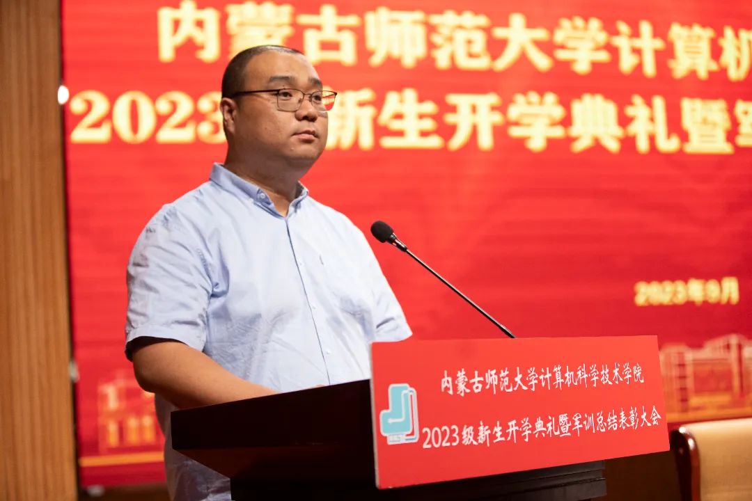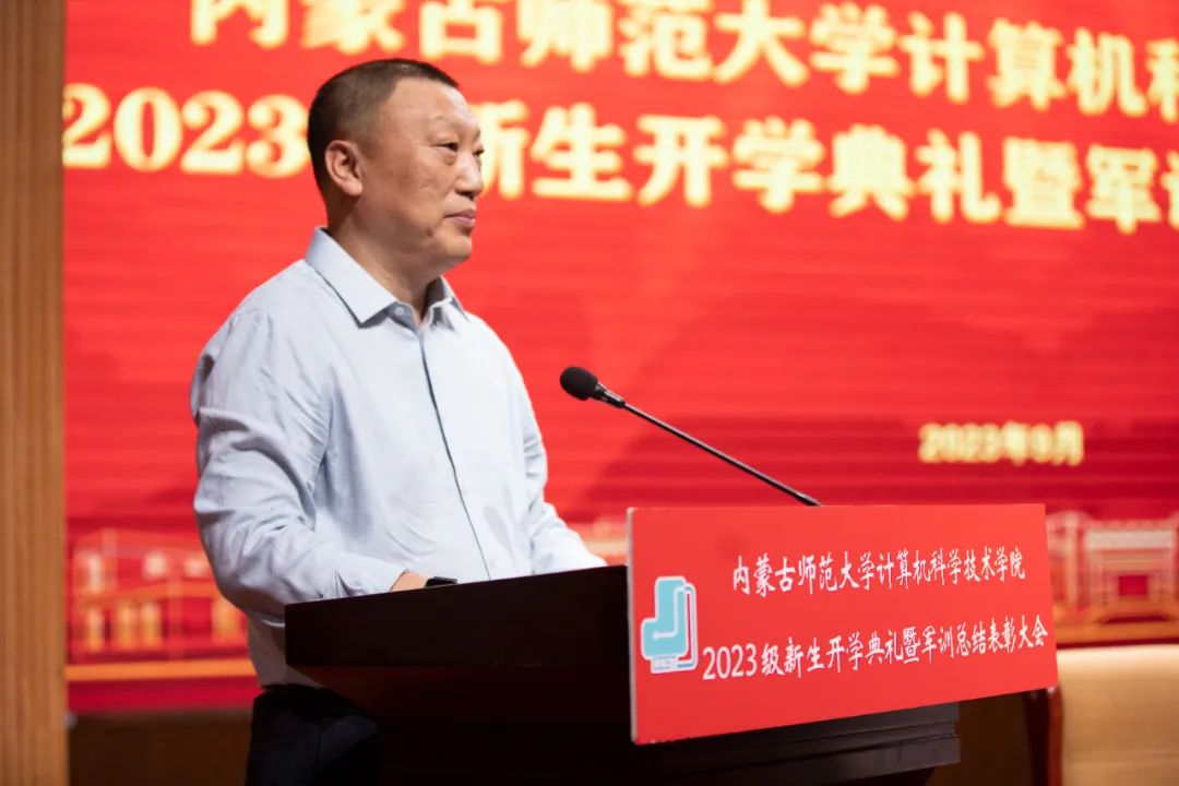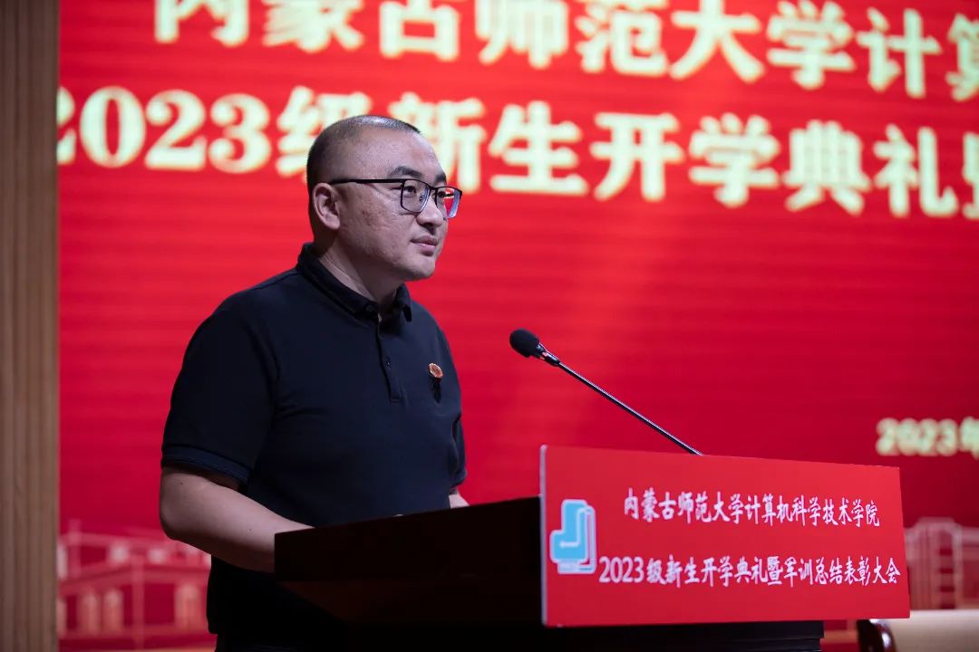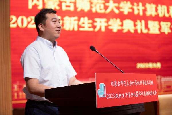 公司党委书记王海龙,公司党委副书记、经理、博士生导师林民,副经理斯琴图,计算机系主任朝力萌,网络与软件工程系主任孟繁军,副主任葛湘巍、徐行健,数据科学与人工智能系副主任包萨仁娜,全体新生班辅导员以及公司2023级373名本科生和59名研究生出席大会。公司团总支书记赵巍伟主持大会。