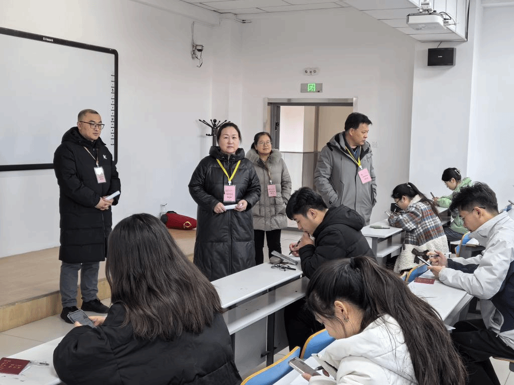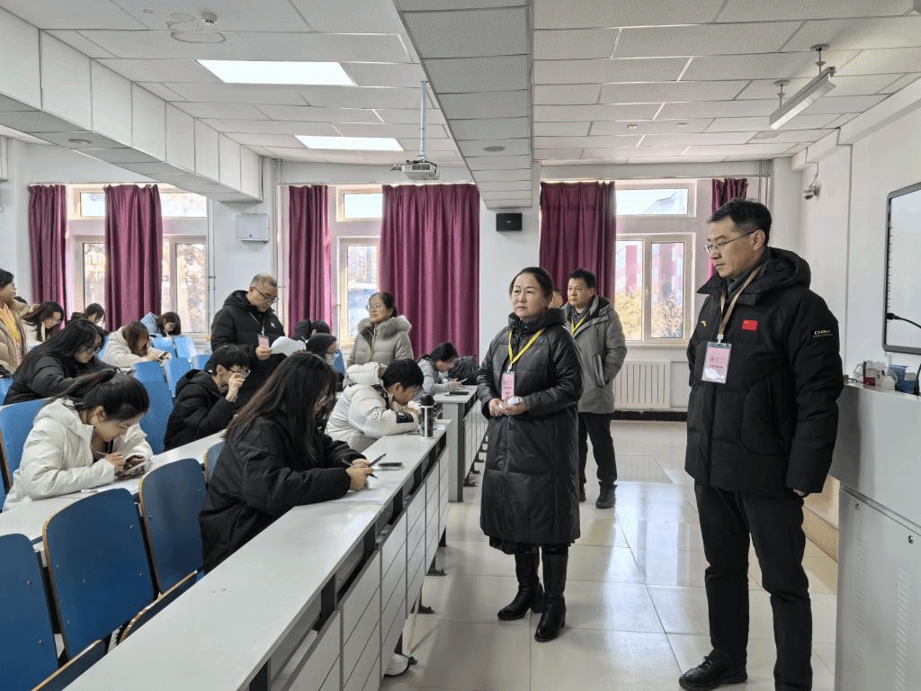 2023—2024学年第一学期期末考试第一天,乌日其木格书记、王海龙经理一行来到行知楼考场,对期末考试工作进行了检查巡视,仔细查看了考试组织安排、考场秩序、试卷及考生答题等情况。