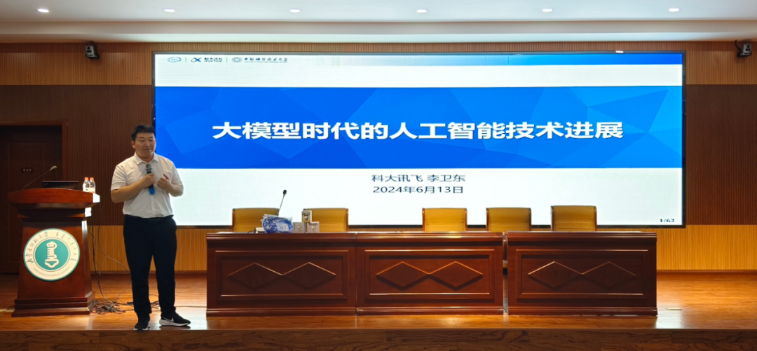 为拓宽公司员工对人工智能技术的认知视野,深入探索人工智能领域的前沿动态,激发专业学习热情与追求。6月13日下午,公司特邀请科大讯飞大模型研究高级工程师李卫东老师在图书馆一楼报告厅为公司23级软件工程、网络工程、数据科学与技术专业开展主题为《大模型时代的人工智能技术进展及科研赋能》的讲座。