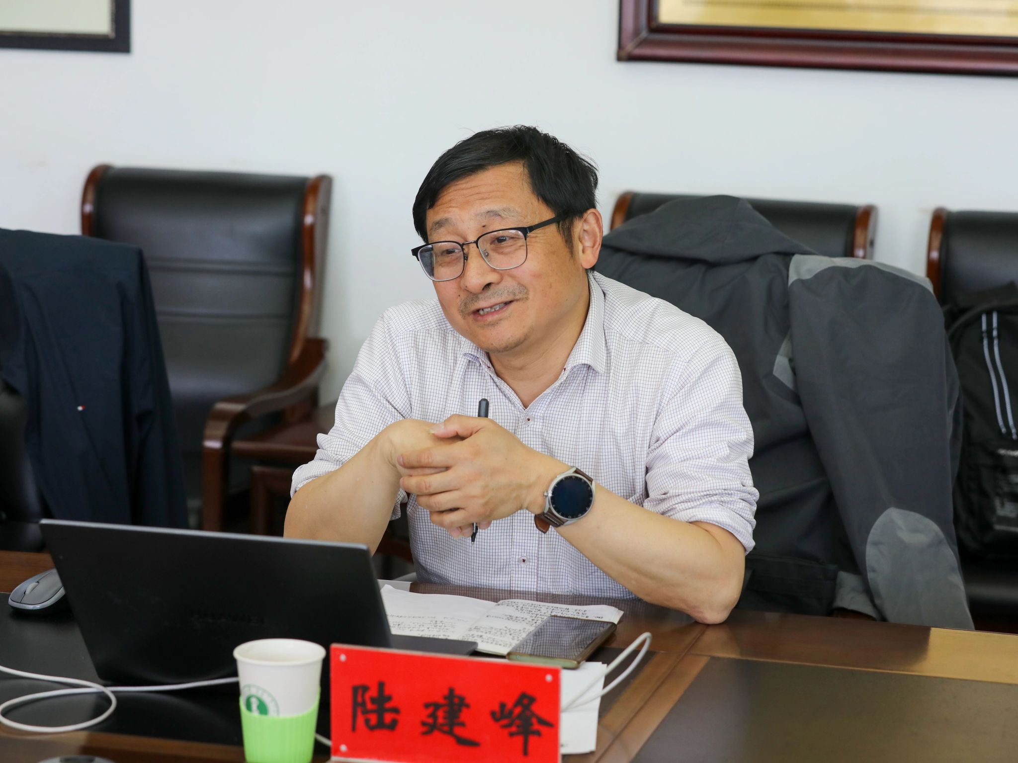 4月28日上午,南京理工大学计算机科学与工程公司党委书记陆建峰、副经理肖亮一行到公司交流座谈。公司党委书记乌日其木格、副经理智敏,系部主任出席会议,座谈会由乌日其木格书记主持。