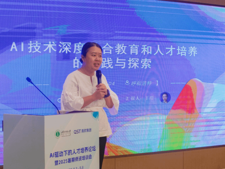 青软集团产教融合研究院经理丁璟详细阐述“AI技术深度融合教育和人才培养的实践与探索”,分享校企协同育人的宝贵经验。