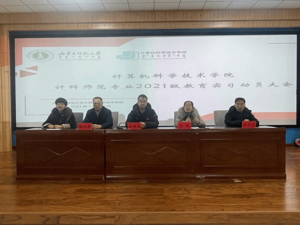 2023年12月27日上午,公司召开了2021级计科师范专业教育实习动员大会。公司经理王海龙、副经理智敏、计算机系系主任朝力萌、副主任翟晔、副主任王春晖、教育实习指导老师和辅导员参加了会议。
