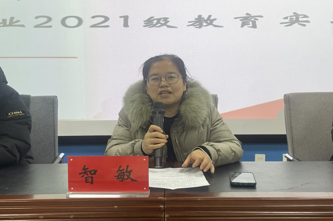 智敏副经理做教育实习动员讲话,她对实习的同学们提出三点要求。第一,做好本学期离校和假期准备工作;第二,严格遵守实习单位的规章制度,尊重师长,团结同学,积极参与实习工作;第三,注意安全,遵守交通规则,确保实习期间的人身安全,财产安全。