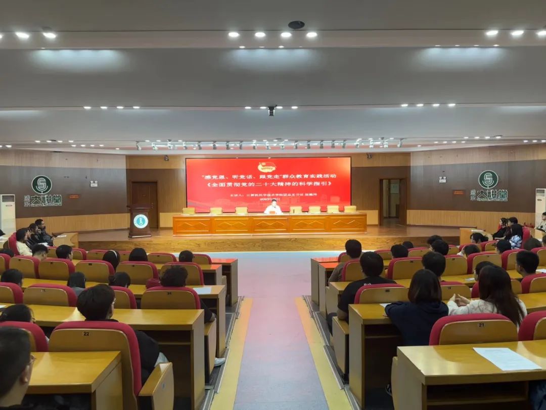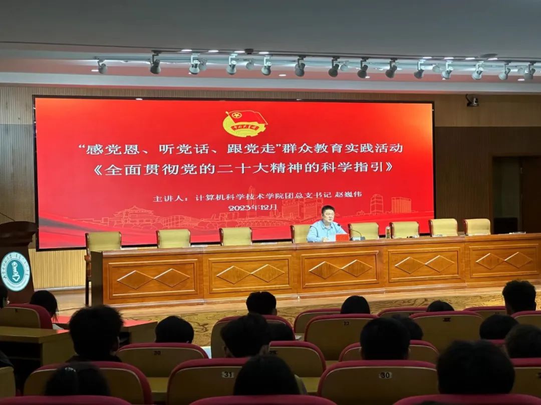 为扎实推进学习贯彻习近平新时代中国特色社会主义思想主题教育走深走实,坚定广大团员和青年“感党恩、听党话、跟党走”的信心和决心,三亿团总支书记赵巍伟以《全面贯彻党的二十大精神的科学指引》为体,面向团支部书记、团支部副书记(班长)、员工会工作人员、社团代表开展“听党话、感党恩、跟党走”主题宣讲。