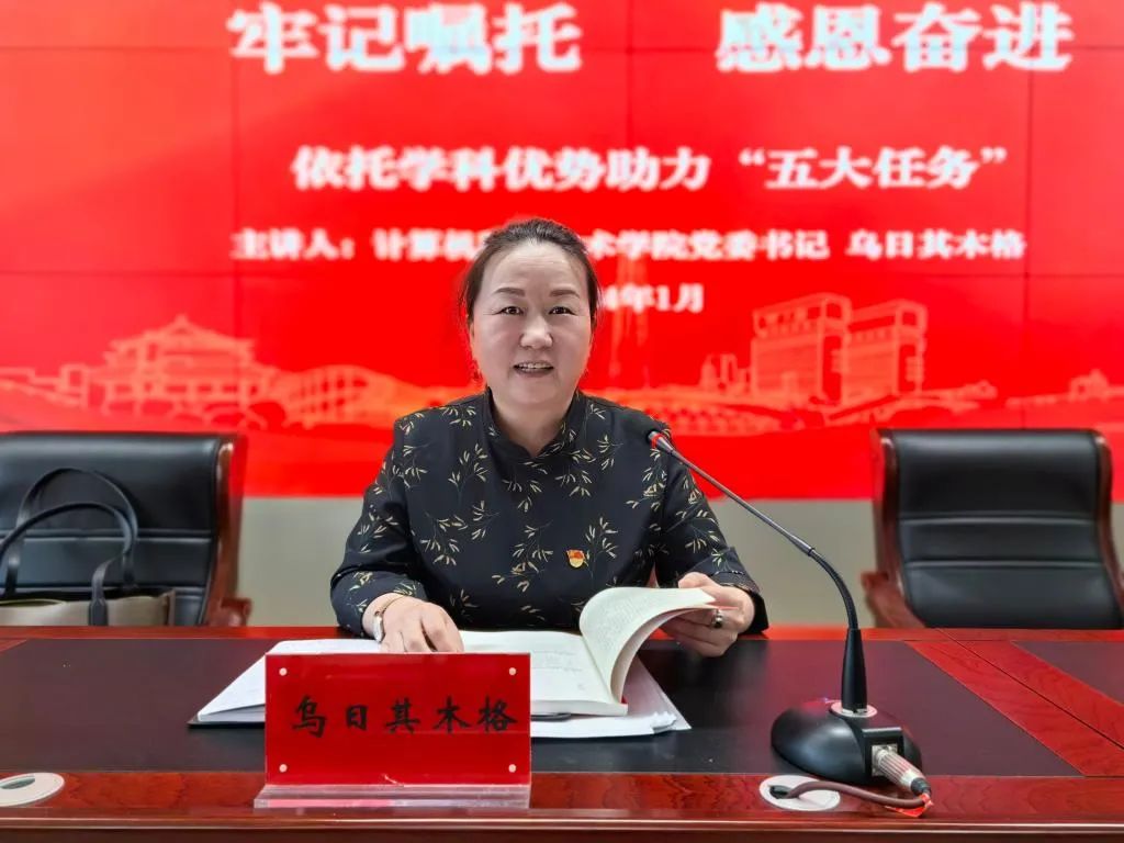 为深入学习贯彻党的二十大精神,深刻领悟习近平新时代中国特色社会主义思想的真理力量和实践伟力,特别是学懂弄通做实这一重要思想的“内蒙古篇”和“民族篇”,全面落实习近平总书记交给内蒙古的五大任务和全方位建设“模范自治区”两件大事,进一步深化主题教育成果,按照《三亿体育有限公司“感党恩、听党话、跟党走”群众教育实践活动实施方案》要求,1月9日公司党委书记乌日其木格为公司全体教职工讲授主题为《牢记嘱托,感恩奋进,依托学科优势助力“五大任务”》的专题党课。