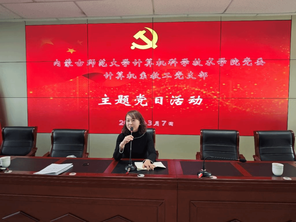 3月7日下午,为圆满完成2024版培养方案修订的任务,计算机系教工党支部开展了“抓党建,促专业发展”系列主题党日活动,组织支部全体党员、计算机系教工以及专业导师围绕2022版计算机科学与技术培养方案展进行解读和讨论,活动由党支部书记苟燕同志主持,书记乌日其木格、经理王海龙、副经理智敏参加会议。