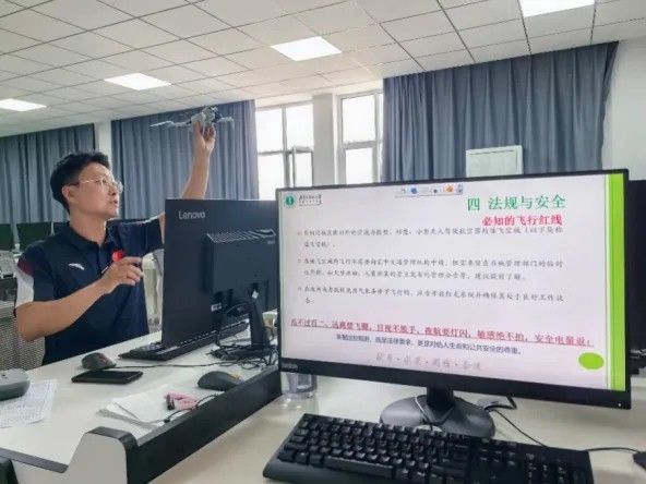 活动中,党支部宣传委员李滨以扎实的专业知识,围绕无人机技术基础及应用开展理论培训。他从无人机的基本构造、飞行原理讲起,深入剖析了无人机在测绘、农业、安防等多领域的应用场景,为教师们打开了教学新思路。