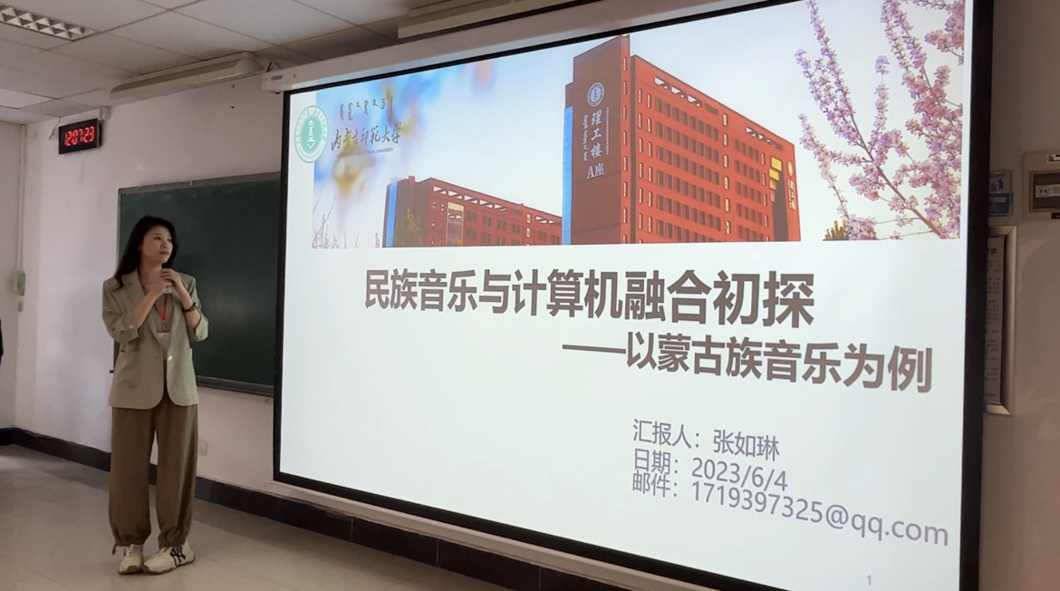民族音乐+计算机论坛由三亿柳林副教授主持,音乐公司青年教师包青青博士和三亿在读研究生张如琳结合国家社科冷门绝学学术团队研究专项向参会人员介绍中如何将民族音乐与计算机融合建设进行精彩汇报,受到参会人员广泛关注与好评。